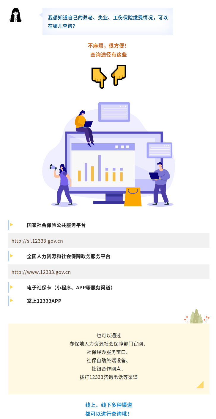 如何查詢自己的(de)養(yǎng)老、失業(yè)、工傷保險(xiǎn)繳費(fèi)(fei)情況?