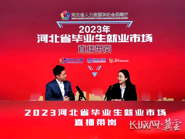 2023年“河北省畢業(yè)(ye)生就業(yè)(ye)市場(chang)”直播帶崗活動現(xiàn)(xian)場。長城(cheng)網(wǎng)(wang)·冀云客戶(hu)端記者 劉瀾瀾(lan) 攝