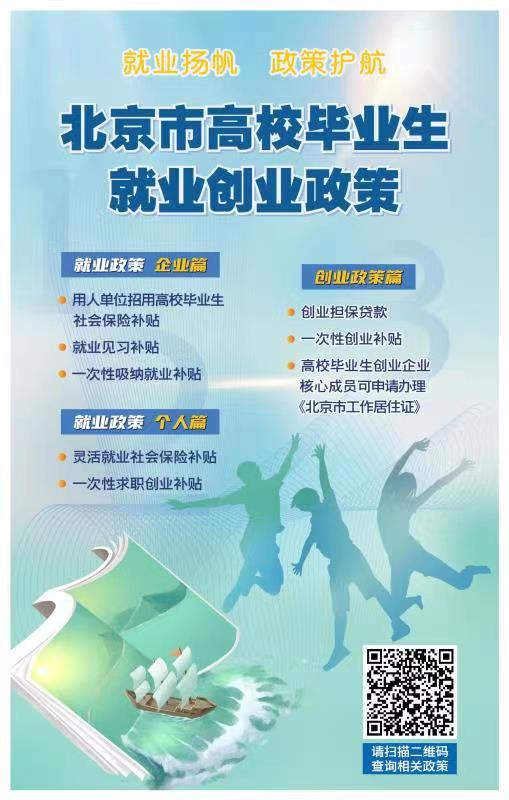 活動(dong)周期間(jian),結合北京市2023年(nian)高校畢業(yè)生等青年就業(yè)創(chuàng)業(yè)(ye)推(tui)進計劃,梳理了就業(yè)(ye)政策(ce)企業(yè)篇、就業(yè)政策(ce)個人篇、創(chuàng)(chuang)業(yè)政策篇等北京市高(gao)校畢業(yè)生就(jiu)業(yè)創(chuàng)(chuang)業(yè)政策清單,包括用人單位招用高校畢業(yè)生社會保險補貼(tie)、一次性(xing)求職創(chuàng)業(yè)(ye)補貼、一次性創(chuàng)業(yè)補貼等共8條政策,在清單中(zhong)提供了(le)政策原文、政策解讀和(he)申請流程(cheng)二維碼,進一步(bu)方便(bian)企業(yè)和(he)高校畢業(yè)生等青年“指尖(jian)操作(zuo)”“手機端”查看,具體詳情(qing)可通過活動海報掃描(miao)二維碼查詢,或者(zhe)直接(jie)關注“好工(gong)作”微(wei)信公(gong)眾號查詢。