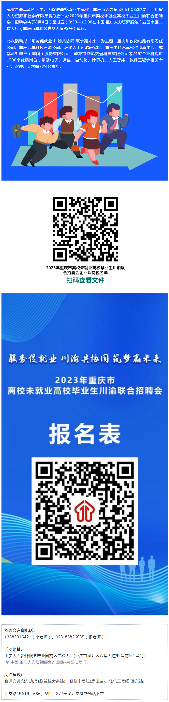 1500個(gè)優(yōu)質(zhì)崗位!@高校畢業(yè)生 川渝聯(lián)合招聘會(huì)將于8月4日(ri)舉辦(ban)