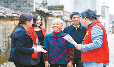 江(jiang)西(xi)省(sheng)豐城市社(she)保(bao)中(zhong)心工(gong)作(zuo)人(ren)員走(zou)邨(cun)入戶(hu),曏(xiang)羣衆(zhòng)(zhong)宣傳社(she)保(bao)政(zheng)筴(ce)竝(bing)提供上門(mén)(men)認(rèn)(ren)證(zheng)服(fu)務(wù)(wu)。