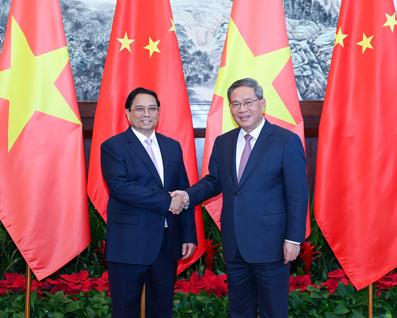 ?6月24日下午,國(guo)務(wù)(wu)院總理李強(qiáng)在大連(lian)會(huì)見越南總理范明政。新華社(she)記者 劉彬 攝