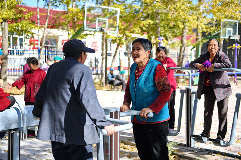 居(ju)住在河北省康保縣土城子鎮(zhèn)互助(zhu)幸福(fu)院的老人們?cè)谠鹤永镄蓍e(2023年10月14日攝)。新華社記者 牟宇(yu) 攝