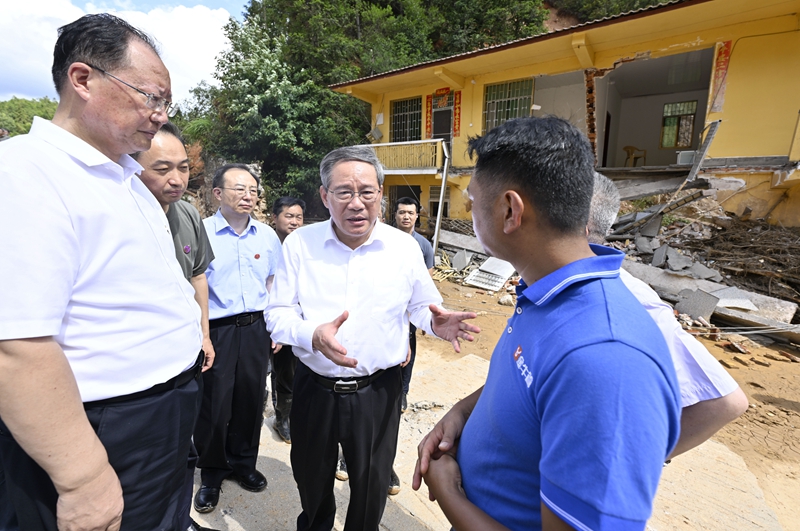 8月1日,中共(gong)中央(yang)政治局(ju)常(chang)委、國務院總理李強在湖南(nan)郴州看望慰問受災群眾,檢查指導防汛(xun)工作。這是李強在(zai)資興市(shi)州門司鎮(zhèn)燕窩村實地察看災情,走訪受災(zai)村民。新華(hua)社記者 岳月偉 攝