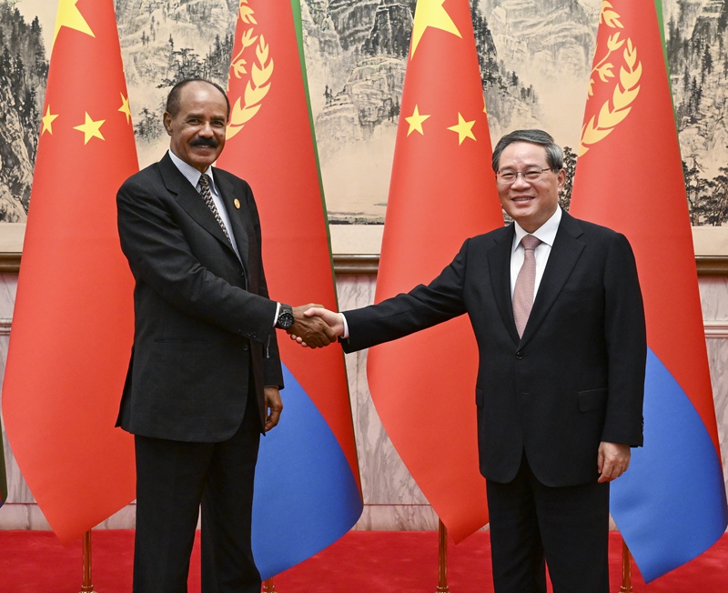 9月3日(ri)上午,國務(wù)院總理李強(qiáng)在北京釣魚臺國賓館會見來華出席中(zhong)非合作論壇北京峰會的厄立特里(li)亞總統(tǒng)(tong)伊薩亞斯。新華社記者 饒愛民 攝
