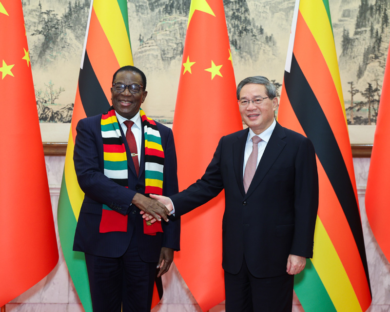 9月3日下午,國(guo)務(wù)院總理李強(qiáng)(qiang)在北京釣魚臺國賓館會見來華出席(xi)中非(fei)合(he)作論壇北京峰會并進(jìn)行國事訪問(wen)的津(jin)巴布韋總(zong)統(tǒng)姆(mu)南加古瓦。新華社記者 劉彬 攝?