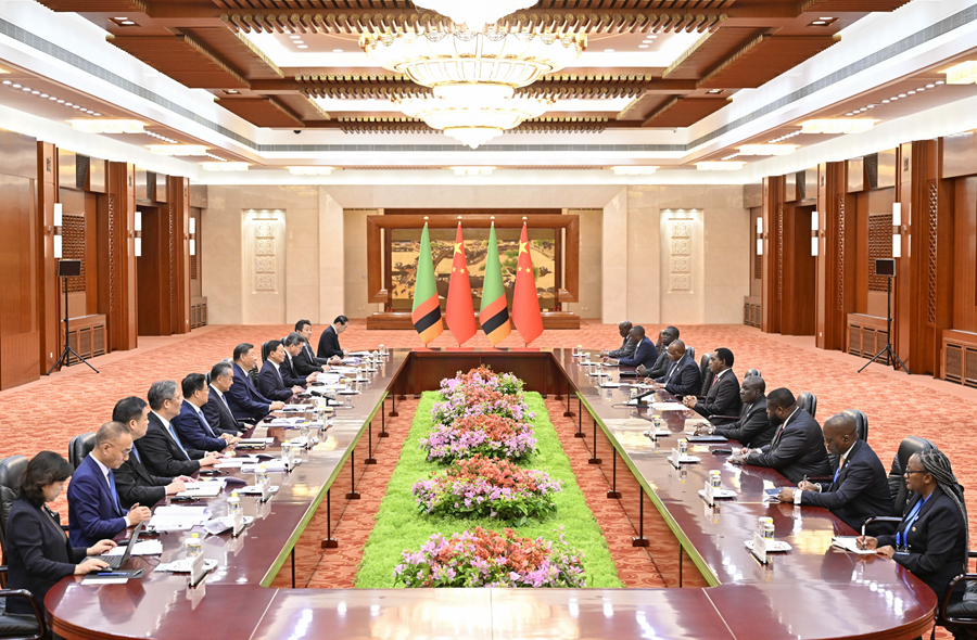 9月4日上午,國(guó)家主席習(xí)近平在北京人民大會(huì)堂會(huì)見(jiàn)(jian)來(lái)華出席中非合(he)作論壇(tan)北京峰會(huì)的(de)贊比亞總統(tǒng)希奇萊馬。新華社記(ji)者(zhe) 殷博古 攝