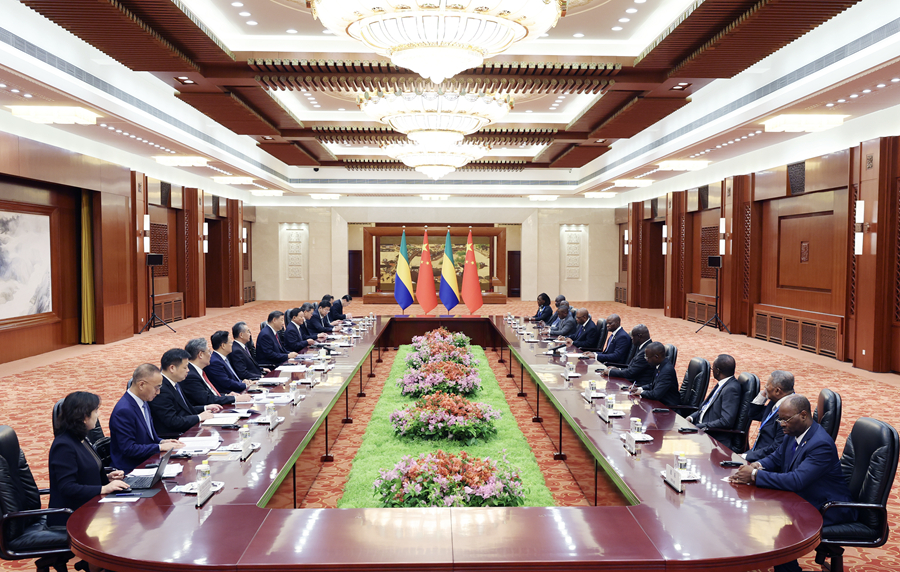 9月4日下午,國家(jia)主席習(xí)近平在北京人民(min)大(da)會堂會見(jian)來華出席(xi)中非合作論(lun)壇(tan)北京峰會的加蓬總統(tǒng)恩圭馬。新(xin)華社記者 姚大偉 攝
