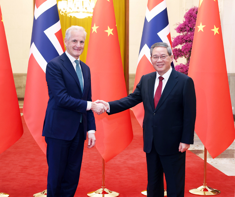 9月10日上午,國(guó)(guo)務(wù)院總理李強(qiáng)在北京人民大會(huì)堂同來(lái)華進(jìn)行正式訪問(wèn)的(de)挪威首(shou)相斯(si)特勒舉行會(huì)談。新華社記者 劉衛(wèi)兵 攝(she)