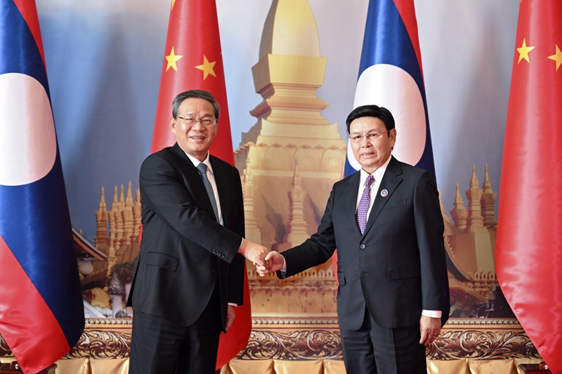當?shù)貢r間10月11日,國(guo)務(wù)院總理(li)李強在老撾(wo)國會會見老撾國會主(zhu)席賽宋蓬。新華社記者 張領(lǐng) 攝(she)