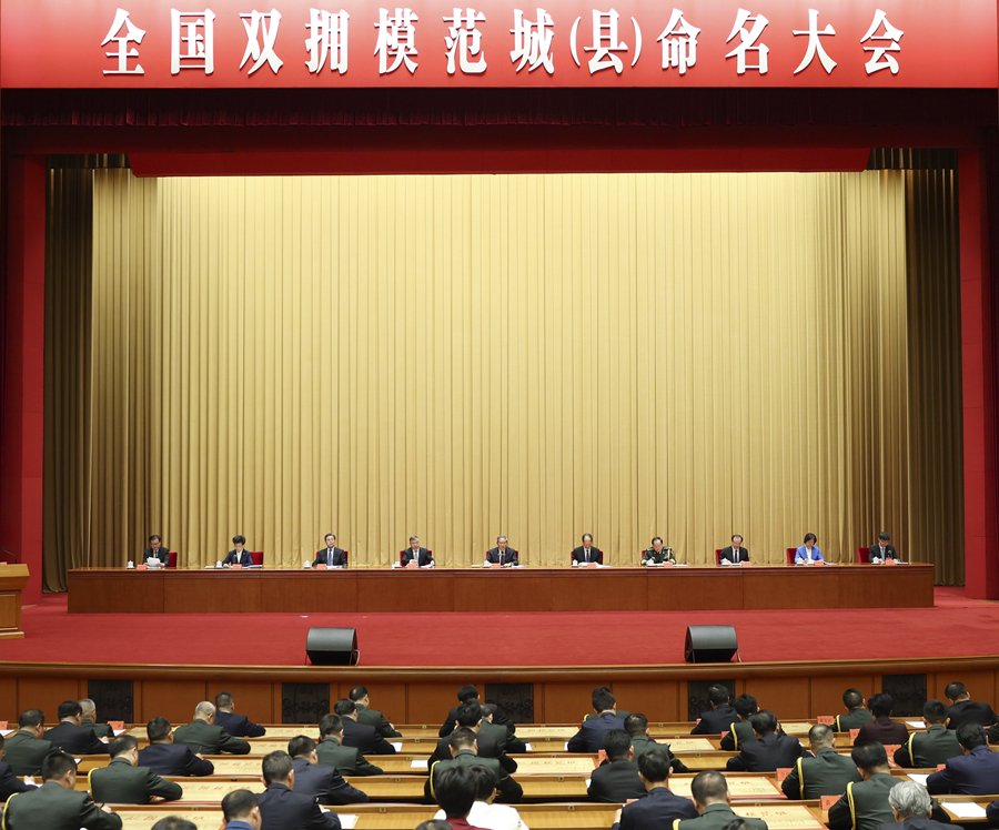 大會宣讀了關(guān)于(yu)命名全國雙擁模范城(縣)的(de)決定,并為全國雙擁模范城(縣)代表頒獎。有關(guān)(guan)軍地(di)代(dai)表作了發(fā)言。