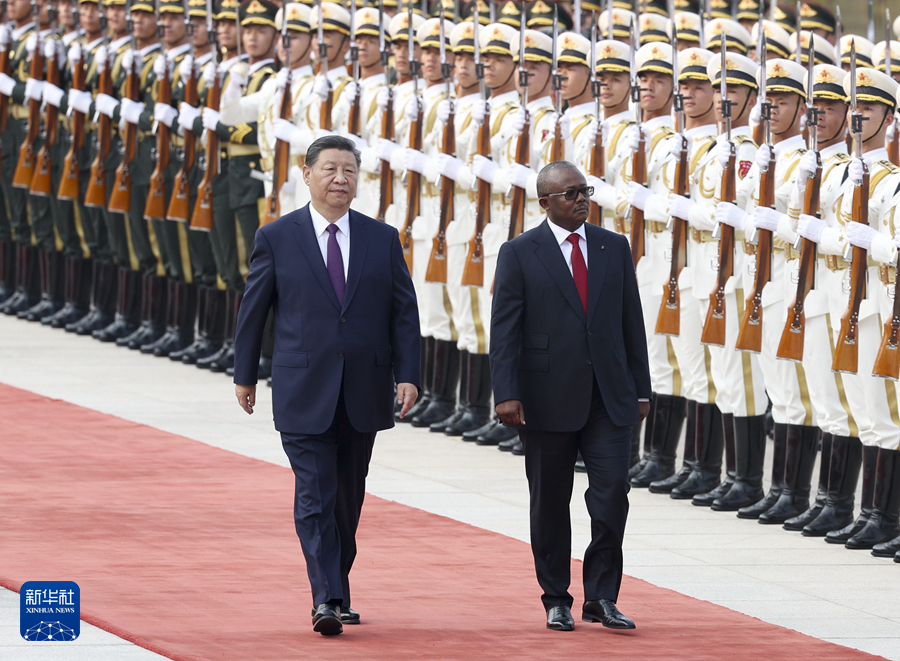 7月(yue)10日下午,國家主席習(xí)近平在北(bei)京人民大會堂同(tong)來華進(jìn)行國事訪問的幾內(nèi)亞比紹總(zong)統(tǒng)恩巴洛舉行會(hui)談。這是會談前(qian),習(xí)近平在人(ren)民大(da)會堂東門(men)外廣場為恩巴(ba)洛舉(ju)行歡迎儀式。新華社記(ji)者 饒愛民 攝