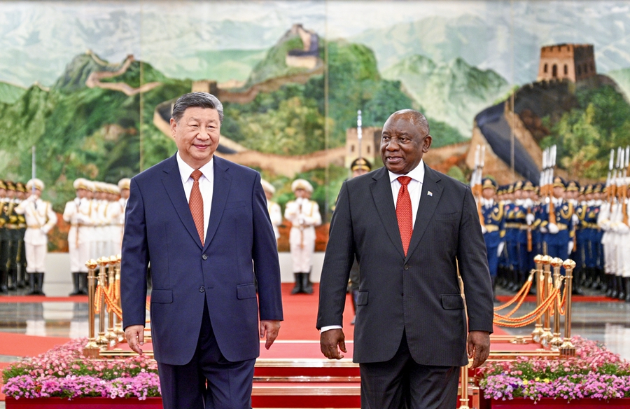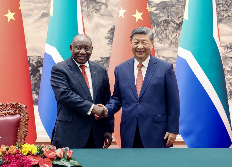 習近平(ping)強調(diào),著眼中南關(guān)系新定位,雙方要把握好“三個方向”。一是(shi)共同進步的政治方向,以高水(shui)平戰(zhàn)(zhan)略互信引領(lǐng)兩國關(guān)系闊步(bu)前行。二(er)是(shi)互利共(gong)贏的合作方(fang)向,完善兩國合作頂層設(shè)(she)計,高質(zhì)量共建“一帶一路”,推動(dong)數(shù)字經(jīng)濟、人工智能、新能(neng)源等領(lǐng)域(yu)合作。三是世代(dai)友(you)好的(de)民意方向,加強人力資源開發(fā)交流合作,加快(kuai)推(tui)進職業(yè)教育示范(fan)學校、職業(yè)培訓中心項(xiang)目,為南非青年提供更多獎學金和研修培訓機會。