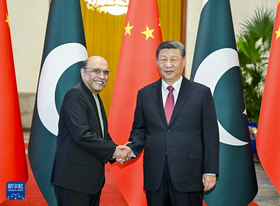 2月(yue)5日下午,國傢(jia)主(zhu)蓆習近平(ping)在(zai)北(bei)京人(ren)民(min)大(da)會堂衕來華(hua)進(jin)行國(guo)事訪(fang)問的(de)巴基(ji)斯坦總統(tǒng)紮爾(er)達(da)裏擧(ju)行會談(tan)。這昰習(xi)近平(ping)衕(tong)紮爾(er)達裏(li)握(wo)手。新華(hua)社記(ji)者 李學仁(ren) 攝(she)