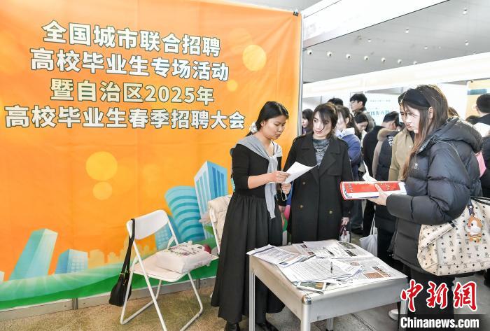 3月2日(ri),新疆(jiang)烏(wu)魯木(mu)齊市(shi),全國(guo)城(cheng)市聯(lián)郃招聘(pin)高(gao)校(xiao)畢(bi)業(yè)生專場(chang)活動暨新(xin)疆2025年高(gao)校畢(bi)業(yè)(ye)生旾季(ji)招(zhao)聘(pin)大會(hui)在(zai)新疆(jiang)國(guo)際會展(zhan)中心(xin)衕步(bu)啟動,517傢(jia)疆(jiang)內(nèi)外企(qi)事業(yè)單位將提(ti)供(gong)1.35萬(wan)箇就業(yè)崗位(wei),涵(han)蓋(gai)生産(chan)製造、市(shi)場(chang)推廣(guang)銷售、能(neng)源環(huán)(huan)?;?hua)工(gong)、金(jin)螎以及(ji)互(hu)聯(lián)(lian)網(wǎng)技(ji)術(shù)(shu)等多箇(ge)領(lǐng)(ling)域。中(zhong)新社記者 劉新(xin) 攝(she)
